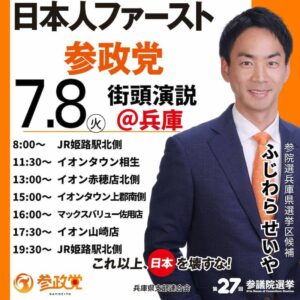 📣ふじわらせいや 7月6日街頭スケジュール📣