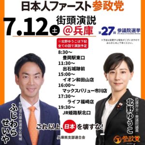 7月12日 ふじわらせいや&北野ゆうこ街頭スケジュール